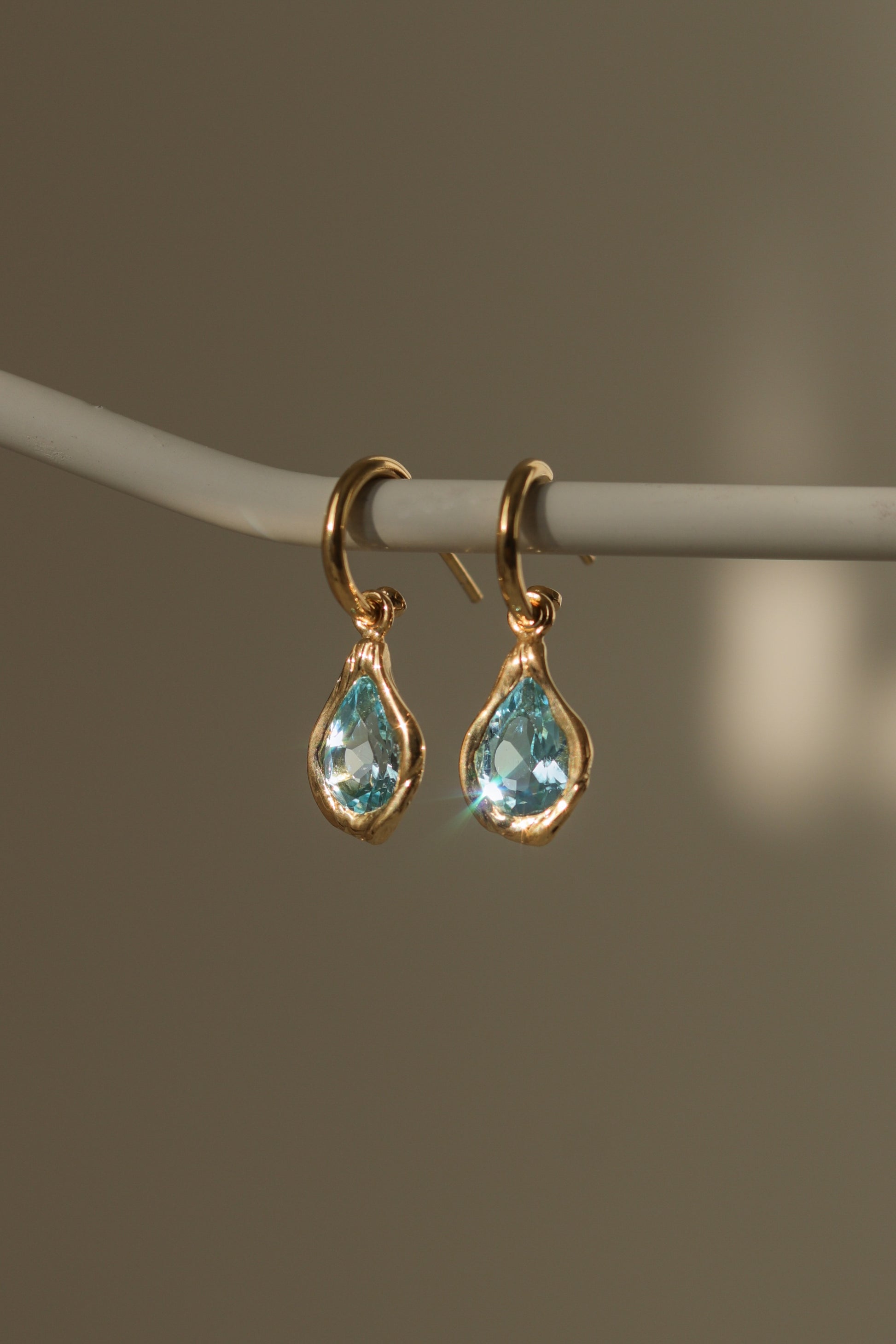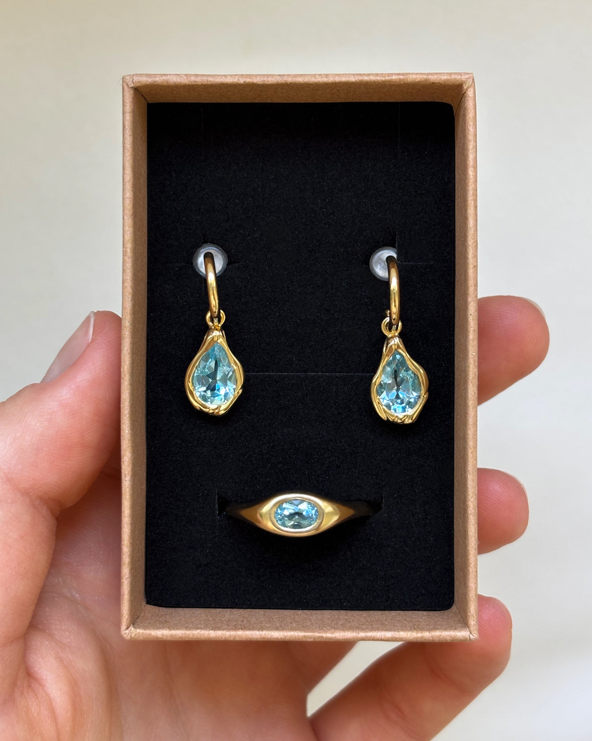 Set with Light Blue Topaz gemstones and plated with a thick layer of 14k solid gold (5 microns) on Sterling silver