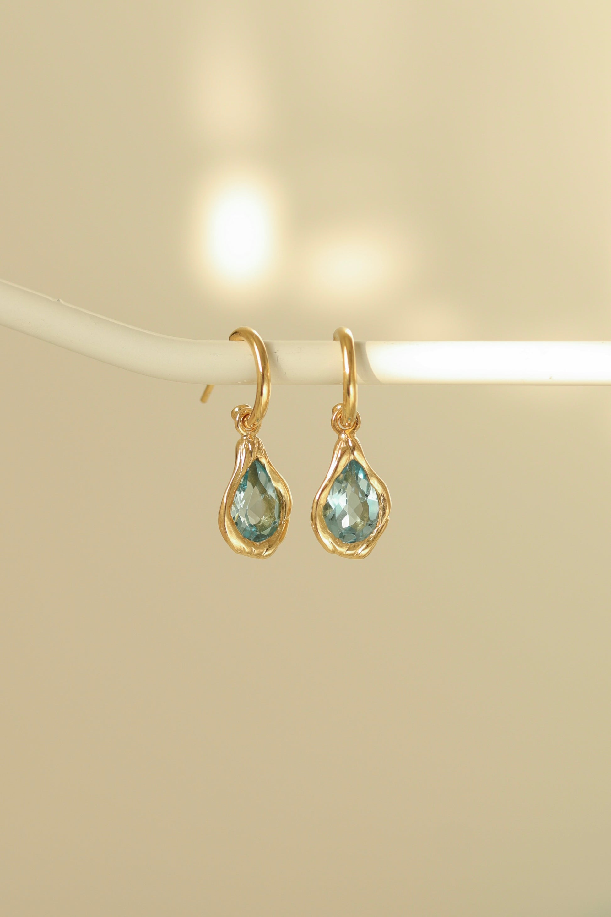 Set with Light Blue Topaz gemstones and plated with a thick layer of 14k solid gold (5 microns) on Sterling silver